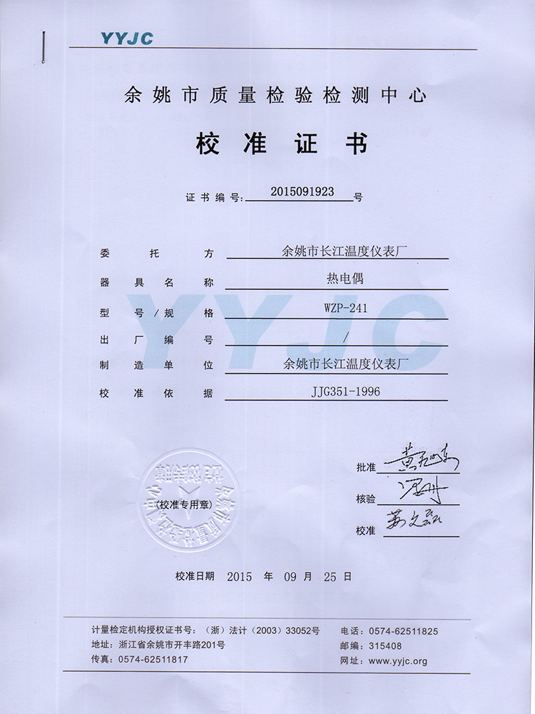 2016年工業熱電偶檢驗報告